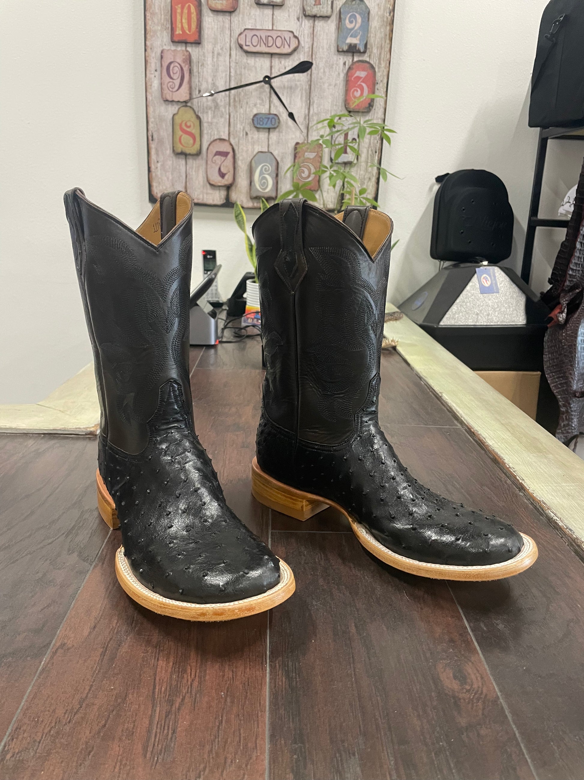 Black Ostrich- Round Toe