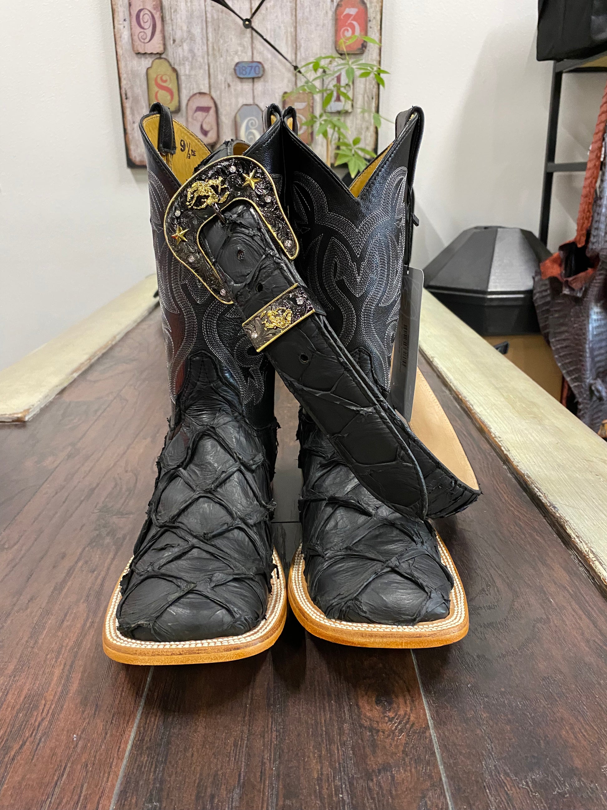 Authentic Pirarucu Boots and Belt,